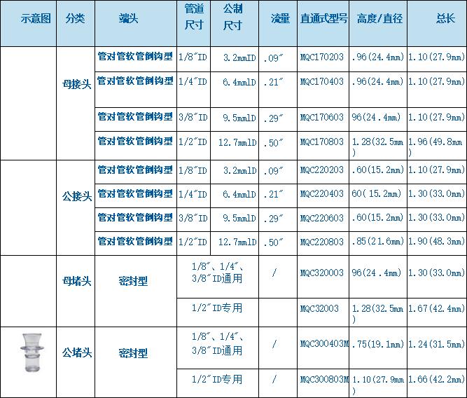 MQC 系列:醫(yī)用快速連接件(開放式型號規(guī)格)